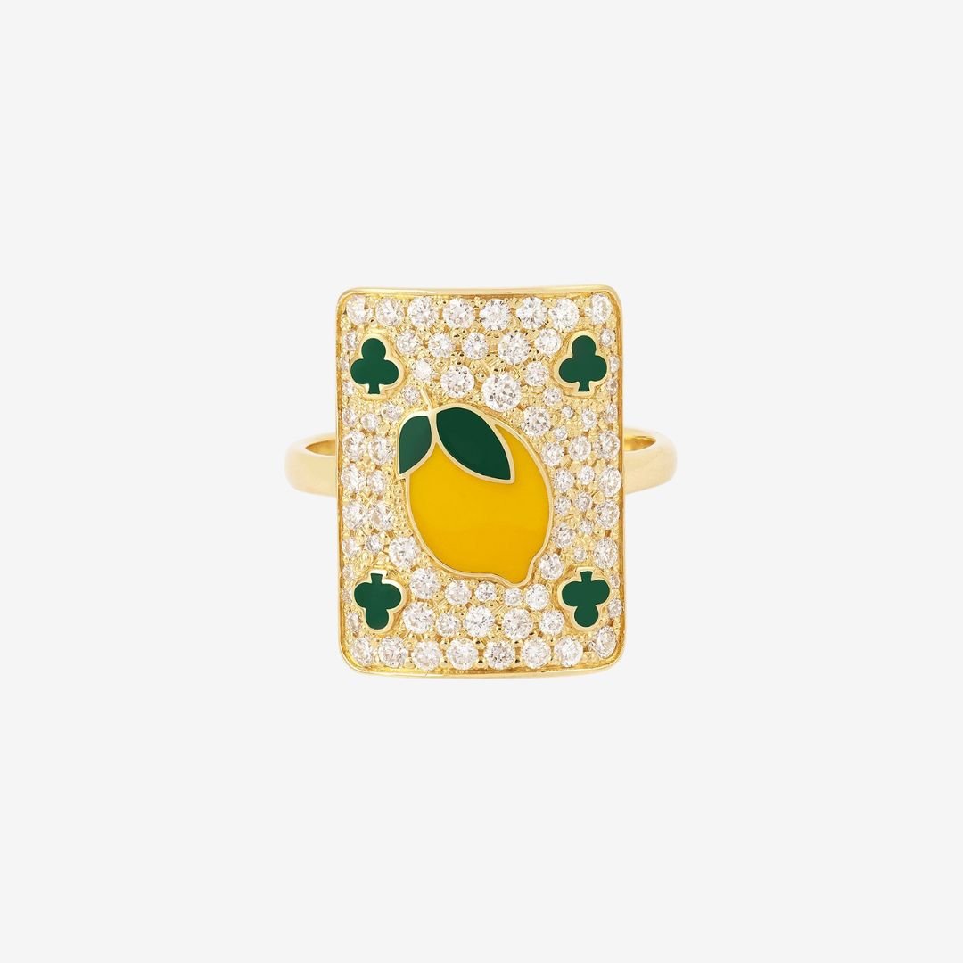 In 18 carat yellow gold and laboratory-cut diamonds, the Lemon ring invites you to bring luck to your fingertips, with these signature lemons.